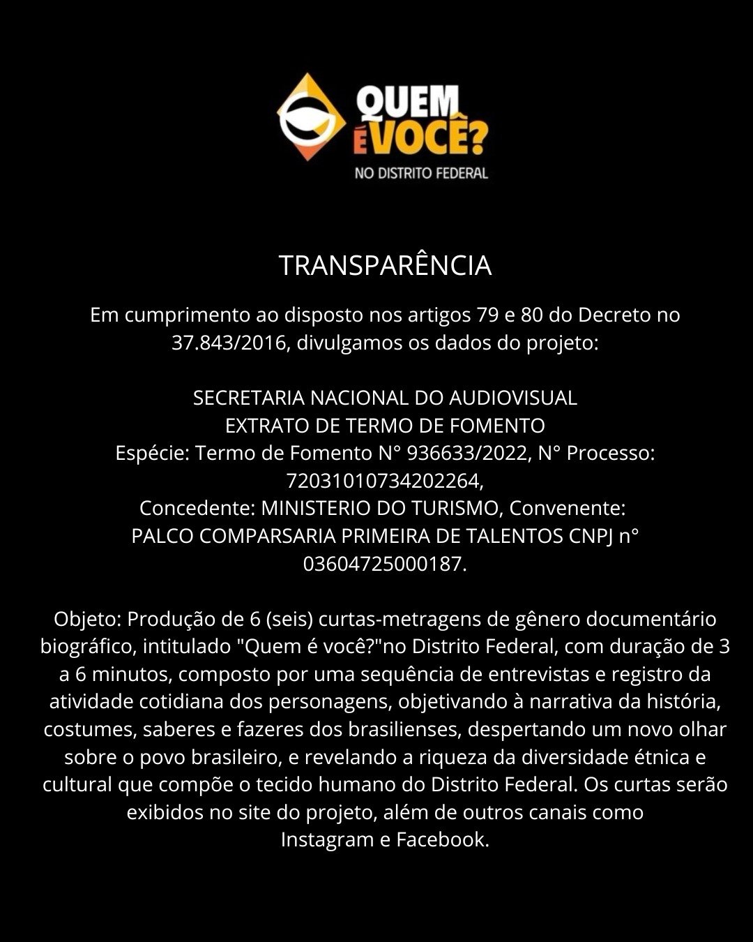 - Órgão Concedente: Secretaria de Cultura e Economia Criativa do Distrito Federal
