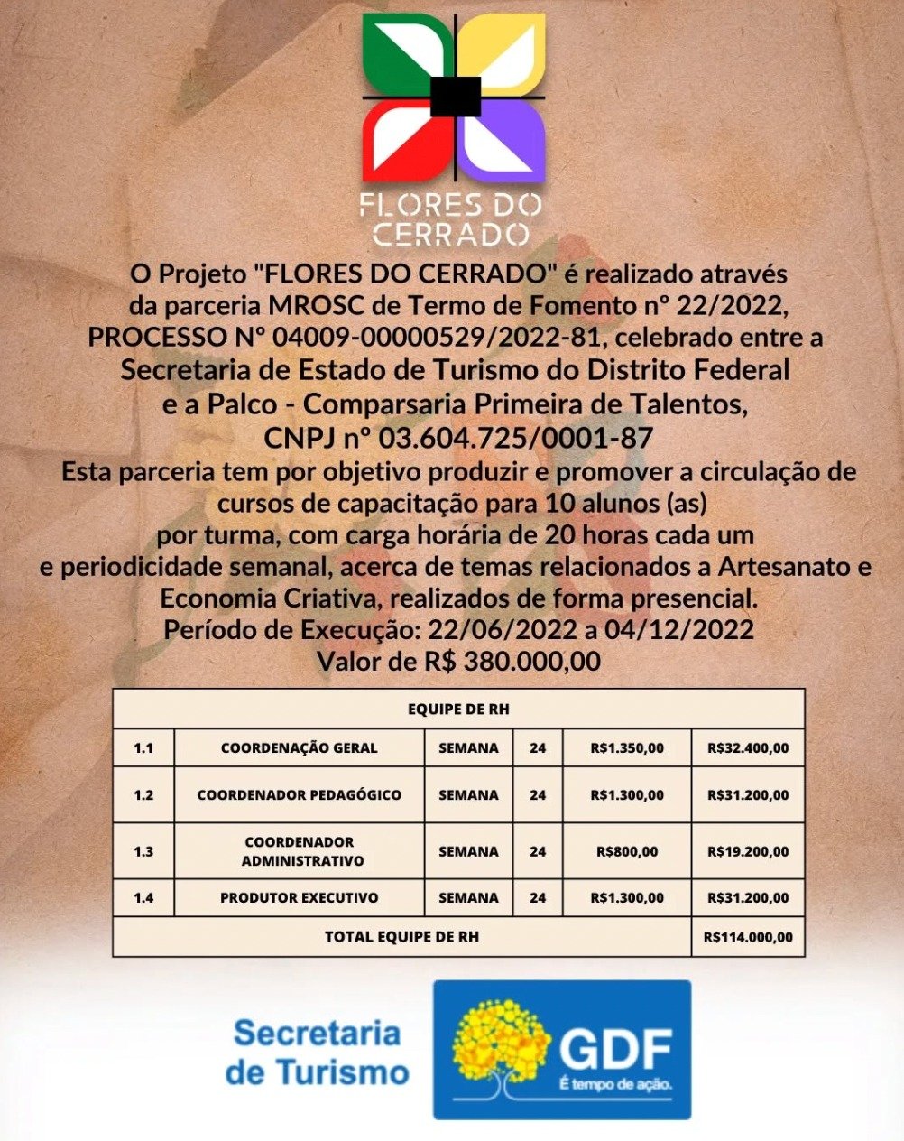 - Órgão Concedente: Secretaria de Estado de Turismo do Distrito Federal