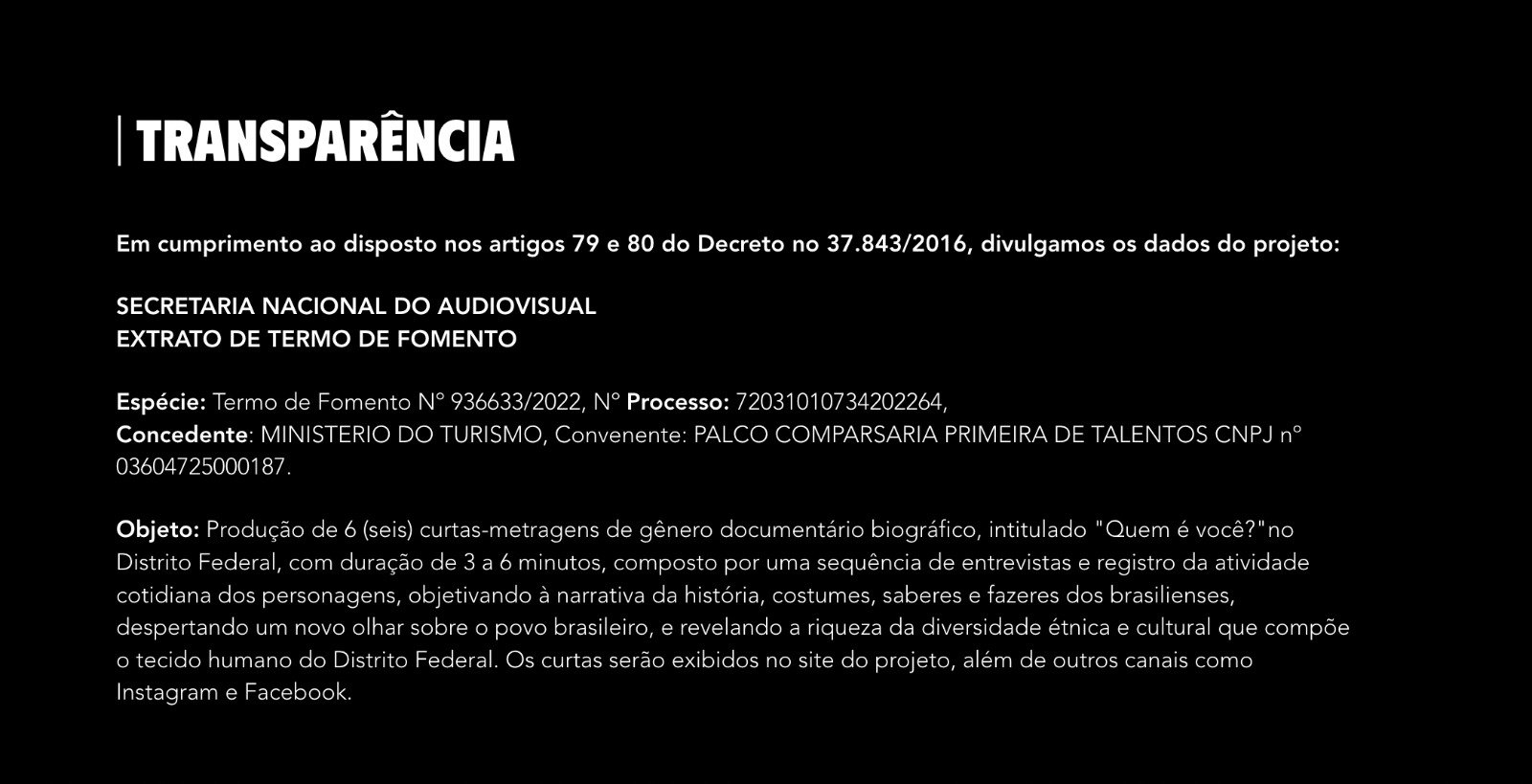 - Órgão Concedente: Secretaria de Cultura e Economia Criativa do Distrito Federal